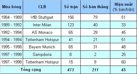 - Giữ kỉ lục với tư cách là cầu thủ ghi nhiều bàn thắng nhất trong một mùa bóng ở UEFA Cup (15 bàn) từ năm 1996 đến 2011. Kỉ lục sau đó bị phá bởi Radamel Falcao (Porto) ở UEFA Cup mùa bóng 2010-2011 với 17 bàn thắng.