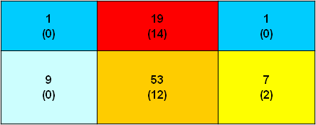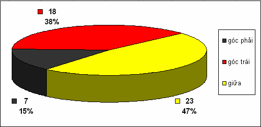 Tuy ít khi dứt điểm về góc phải, nhưng góc sút này có tỉ lệ thành bàn rất cao với tỉ lệ thành công đến hơn 85% . Các hướng còn lại chỉ dừng ở mức độ trung bình (hình 4b)