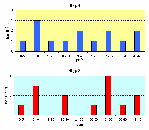 Hình 5a - Phân bố các bàn thắng theo thời gian mỗi hiệp