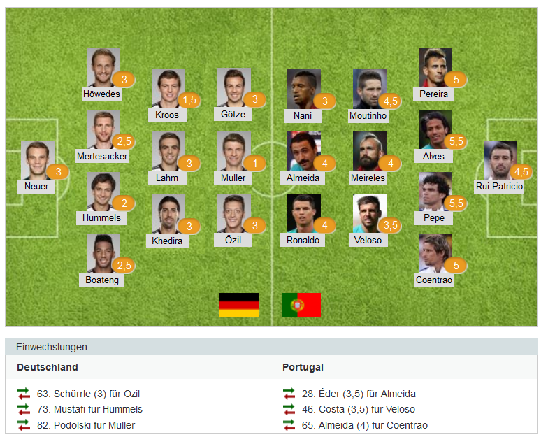 Cả công và thủ, các học trò của HLV Löw đã thực thi rất tốt ý đồ của vị HLV này. Thẻ đỏ của Pepe hay những thay đổi bắt buộc do chấn thương từ phía Bồ Đào Nha chỉ làm cho kế hoạch của tuyển Đức trở nên dễ dàng hơn mà thôi. Đúng như kế hoạch, người Đức không bất ngờ khi Ronaldo mờ nhạt cả trận ngoài những pha đá phạt vô bổ. Có chăng chỉ là bất ngờ khi mọi thứ trở nên quá dễ dàng và thuận lợi đến thế.